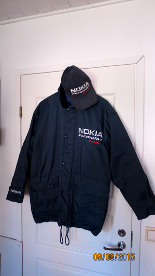 Nokia formula1 team kansitakki (koko L) + lippis. ( Vuodelta 1995 kun Nokia sponsoroi Tyrell tallia, jonka kuskina ajoi Mika Salo ) Kunto: aikanaan vähän käytetyt, mutta ihan siistit, väri tumma sininen:) H.yht.20e Gone in 60 seconds (puhallettu 60 sekunnissa) pahvinen tukeva vhs/dvd esittelyhylly vuodelta 2001 (kork. noin 190cm ja kunto hyvä) auto ja teksti tulevat ulos kuvasta H.120e (melkoisen harvinainen ja tietty ilman levyjä)