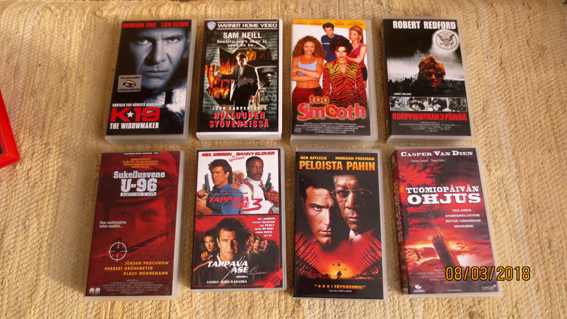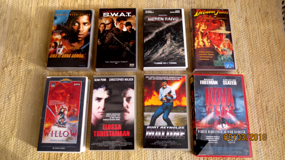 widowmaker (harrison ford), tuoreempia vhs leffoja 1-2e/kpl (yläkuva) : Aika ei anna armoa (denzel washington), S.W.A.T (samuel jackson, colin farrel), Meren raivo (clooney, mark wahlberg), Indiana jones ja tuomion temppeli, Willow - mahtava seikkailu, Elossa todistamaan (sean penn, christopher walken), Malone (burt reynolds), Kova sade (freeman, slater) Paholaislentäjät 5e, Väkivallan vihollinen