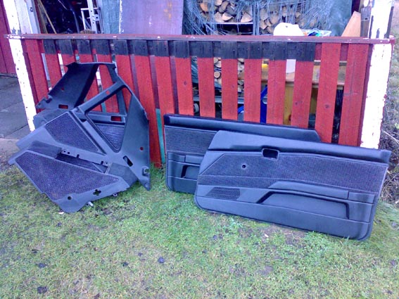 B12 coupen ovipahveja ja sivuverhoiluja ym (hinta kunnosta riippuen) takasivuverhoilut 4 paria menivät jo jätekuormaan kun veivät tilaa liikaa, mutta irroittelin verhoilukankaan palat talteen näistä
